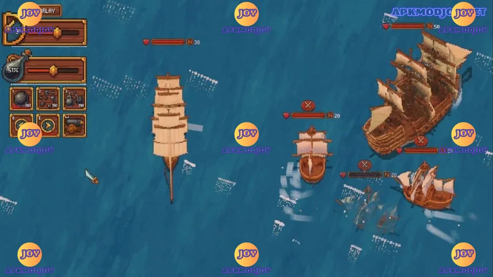 - Gestión de flotas personalizada: Puedes modificar tus barcos con nuevas armas, velas, y mejoras.